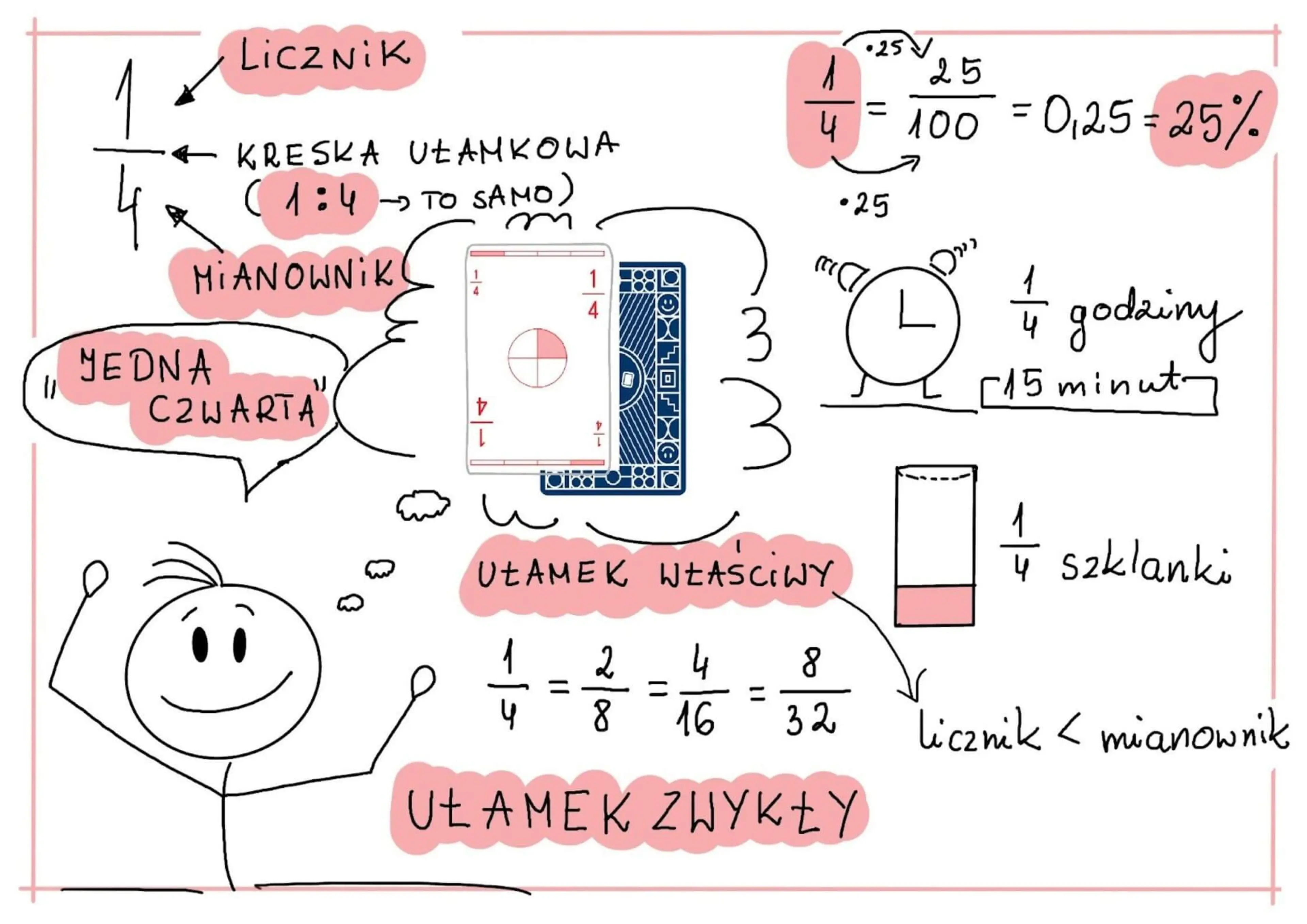 Ułamki zwykłe to dla wielu uczniów pierwszy poważniejszy sprawdzian z myślenia matematycznego. Jak wytłumaczyć, że 1/2 to tyle samo co 2/4? Albo dlaczego 1/4 to 0,25? Jak w prosty, przyjemny i angażujący sposób nauczyć dziecko ułamków? Na moich lekcjach odpowiedzią stały się Karty Grabowskiego Ułamki. To nie tylko pomoc dydaktyczna, ale prawdziwe narzędzie do rozwijania logicznego myślenia i matematycznego rozumowania.