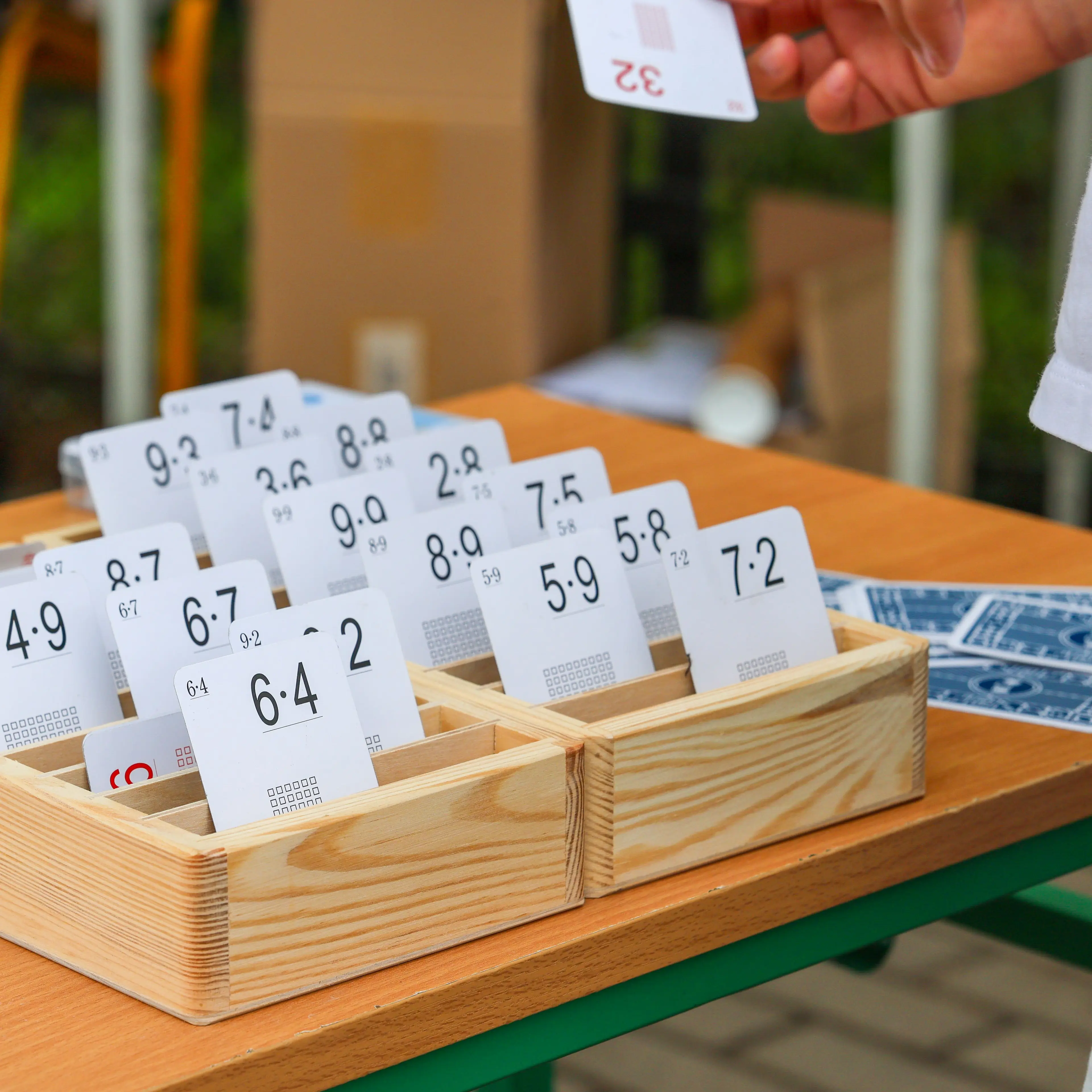 Aby móc rozegrać grę z wykorzystaniem drewnianych pudełek, konieczne jest posiadanie Kart Grabowskiego Tabliczka mnożenia. Tutaj możesz dowiedzieć się więcej o tych kartach: